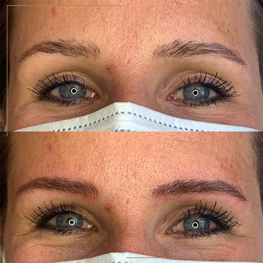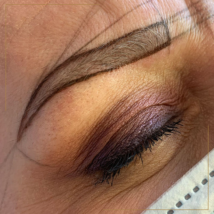 6-8 weken na het zetten van PMU. De huid is dan volledig hersteld, nu kunnen we precies zien waar we de puntjes nog op de i kunnen zetten.